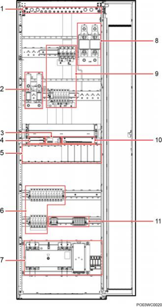(4)通信扩展模块安装空间 (5)整流模块安装空间 (6)交流输出空开