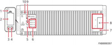 特点 ● 并联扩功率特性: N组并联支持最大功率P≤24kW,具体计算参考3.2 并联应用。 ● B类直通风应用:温湿度不受控的房间内或一般的室外环境(包括只有简单遮蔽 (如遮阳棚)、湿度偶然会达到100%的情况)。 ● 支持第三方电源:锂电自管理,支持匹配第三方电源应用。 ● 混搭应用:支持与铅酸电池直接并联使用。 ● 火灾抑制特性:具备火灾抑制功能。 C口 说明 ● 火灾抑制装置是非储压无色无味液体,不存在活性物质流失,免维护。 ● 火灾抑制装置的药剂释放后,现场环境中无残留。火灾抑制装置的药剂释放后,同柜安 装的整流模块必须更换。同时建议其他同柜安装的设备更换成新的模块。 ● 火灾抑制装置喷发现场以及电池热失控产气影响,维护时应佩戴防毒面具(防止挥发的 电解液及有害气体)并穿着静电防护服。 ● 热失控后的电池,灭火后仍处于高温状态,需用红外采温判断降温至室温±10℃时由人工 取出;人工操作前需穿戴防护服,防止触电风险,之后人工拆卸热失控电池,连同电池柜 一并运出;最后将热失控电池及柜内其余电池放置入饱和浓盐水中,建议浸泡一周。 外观与接口 图 2-1 面板与接口