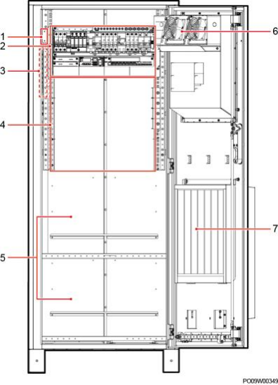 (4)用户设备安装空间 (5)电池安装空间 (6)直通风风扇