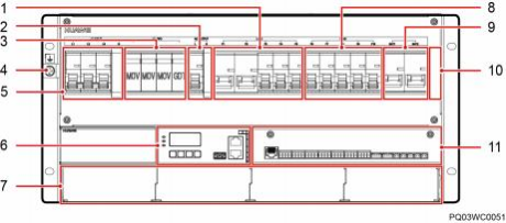 ( 1 )LLVD空开 (2)交流输出空开和端子 (3)交流防雷器