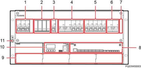 (1)交流输入空开和端子 (2)交流防雷器 (3)交流输出空开和端子